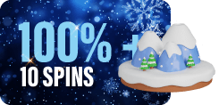 A 100% Slots Deposit Match Bonus, plus 10 Bonus Spins on Snowmania!
