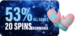 A 53% Casino Games Deposit Match Bonus, plus 20 Bonus Spins on Snowmania!